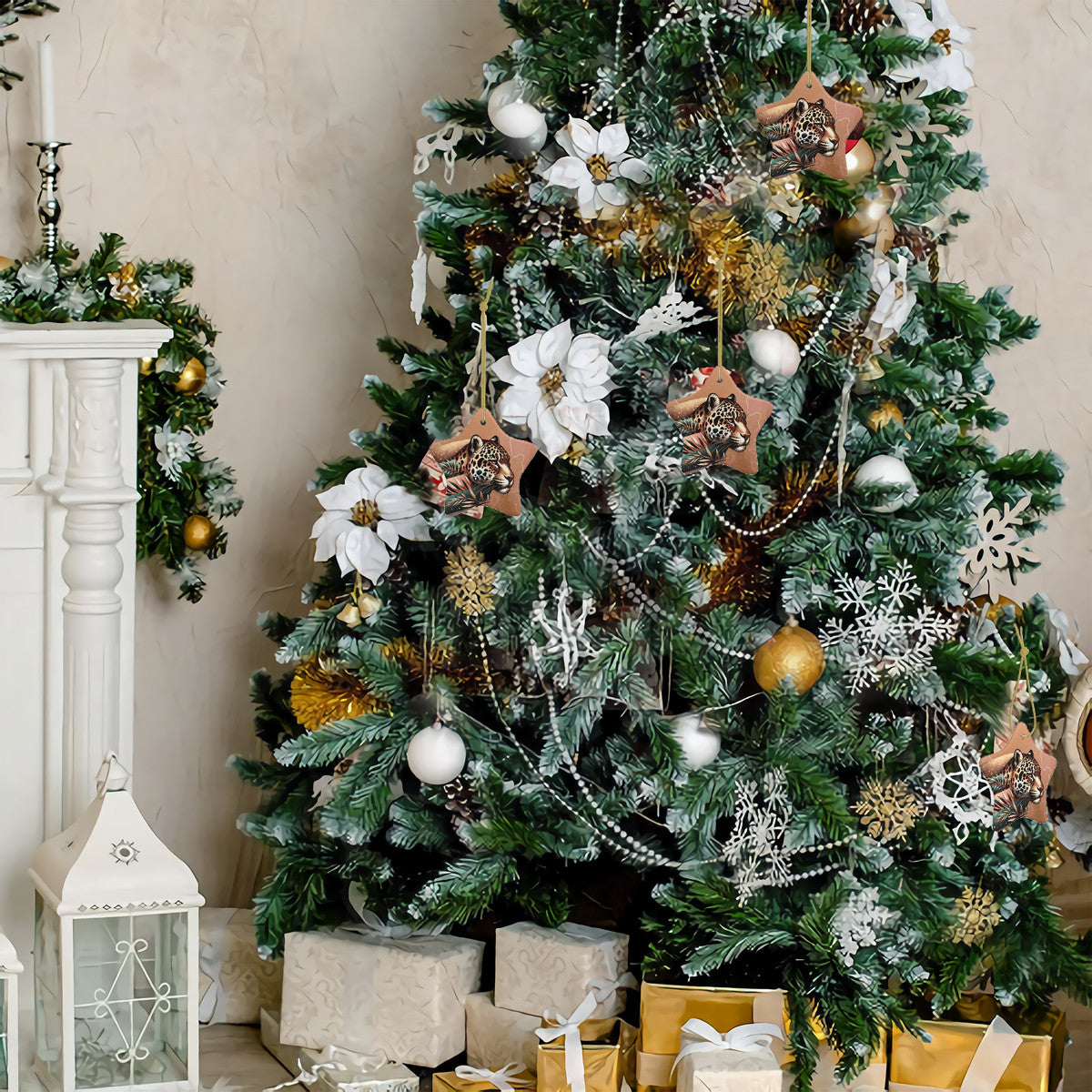 Perfect for nature enthusiasts, this unique ornament brings the wild beauty of the jaguar into your holiday celebrations with a fun star-shaped design that stands out on any tree.